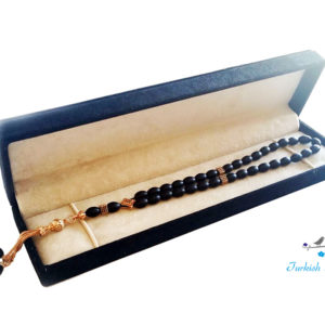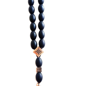 Handmade Matte Onyx Gemstone Beads with Rose Silver Tassel and Black Swarovski Stones | Elyapimi Swarovski Taslarla Suslenmis Tesbih
