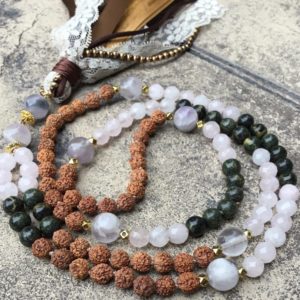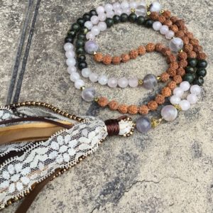 Hand- knotted with intention and love by me……made traditional style hand-tied knots between each bead. This technique allows the Mala to lay gracefully on the body when worn.
